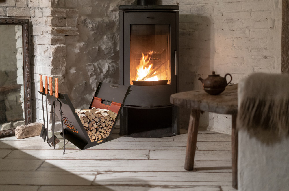 Революційна модель камінного набору "Вогонь" підкреслить статус власника. А також створить комфорт при використанні. Сумка для дров із натуральної шкіри дуже зручна для доставки дров із місця зберігання безпосередньо до вогнища. Корпус конструкції оснащений відстійником (вішалка) для зберігання сумки у разі повного завантаження корзини дровами. М'які, приємні на дотик ручки інструменту обшиті натуральною шкірою з тисненням.