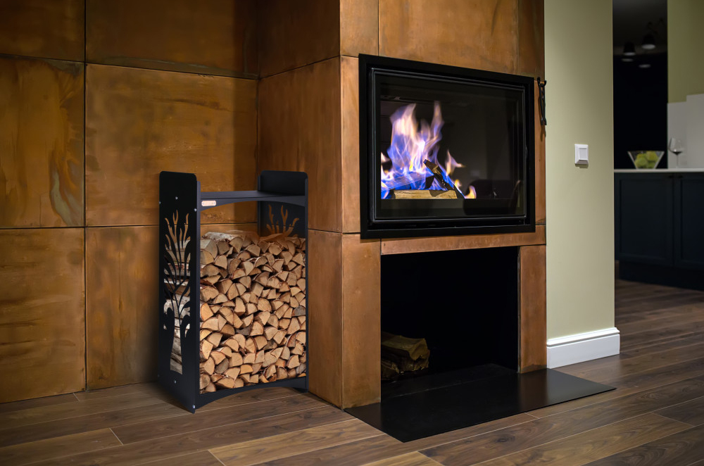 Дровниця гармонійно поєднується в комплекті з камінними наборами. Набір для каміна - це відмінний подарунок в будь-яку пору року!