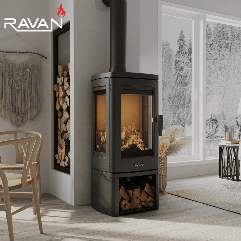 Пічка камін на дровах Ravan Elara має систему подвійного допалу, завдяки якій незгорілі частинки палива спалюються повторно. Ви зможете суттєво знизити витрати на опалення.